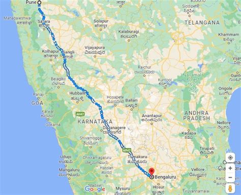 Pune To Bangalore Map
